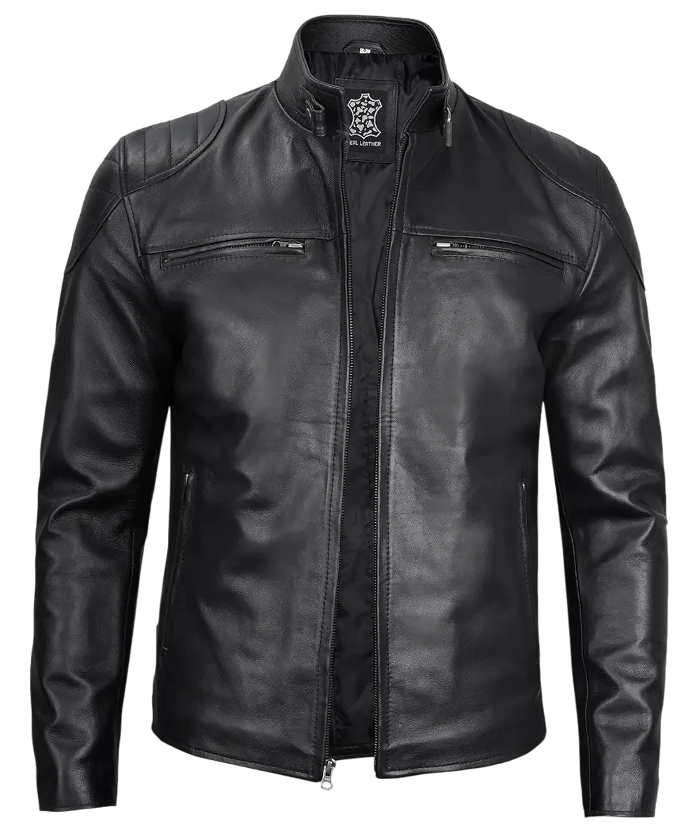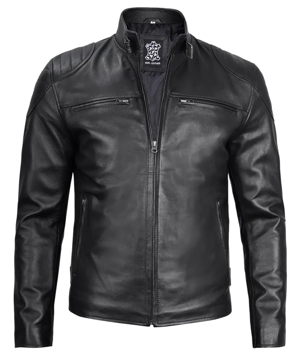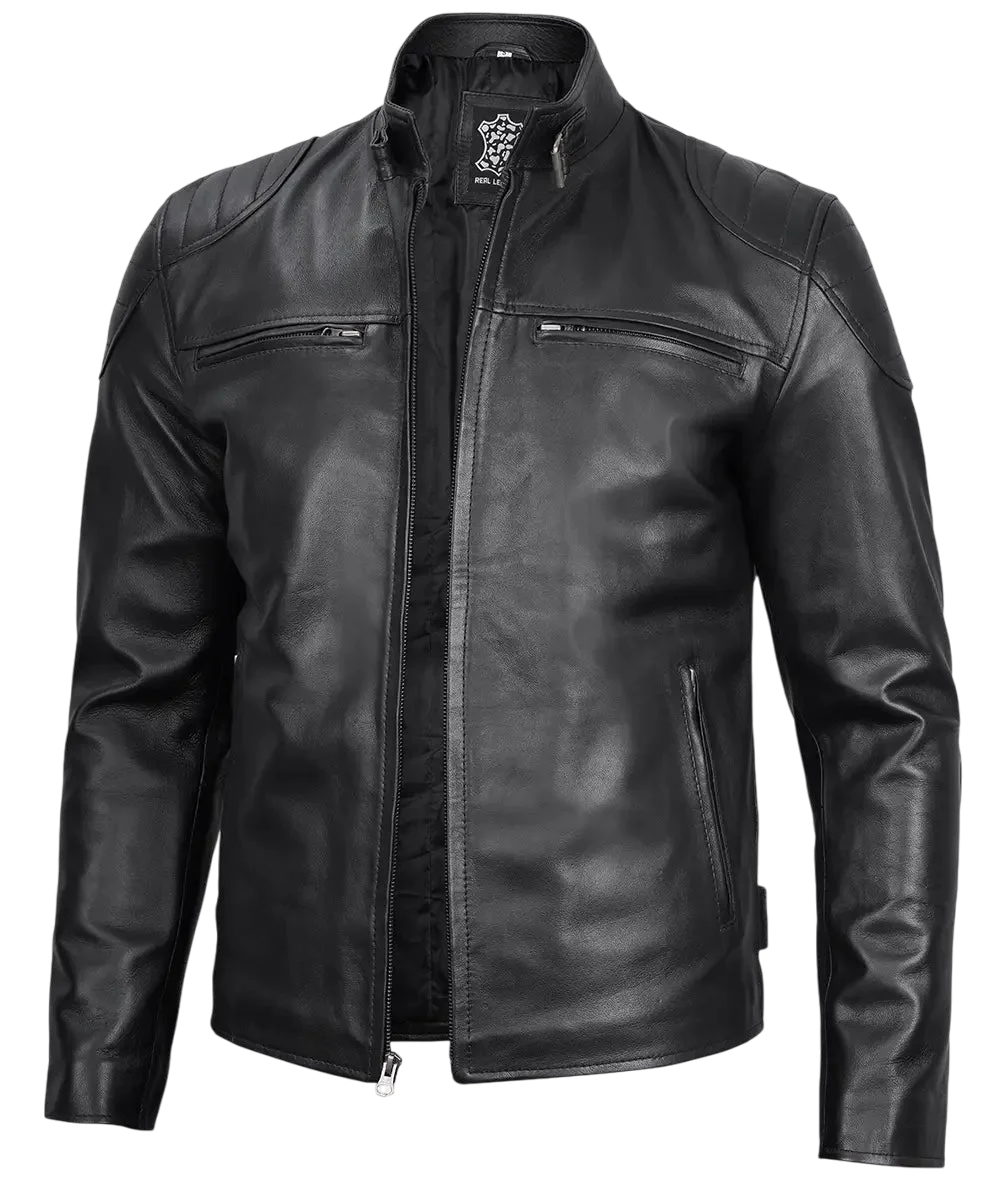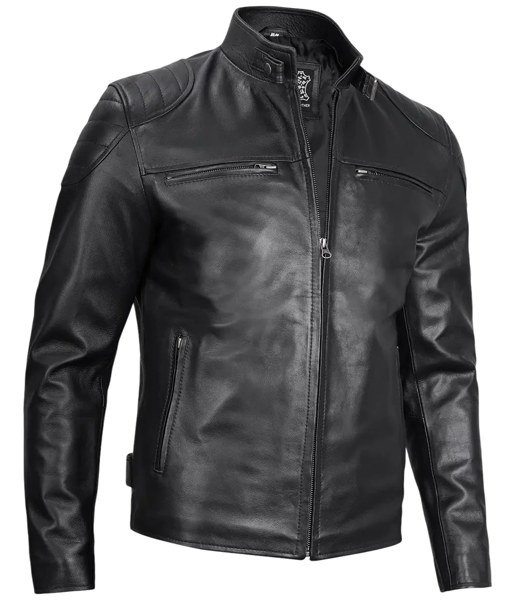4 reviews for Mens Black Lambskin Leather Cafe Racer Jacket