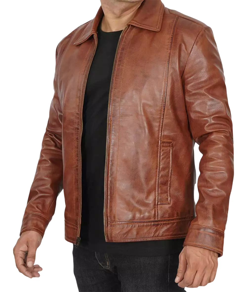 Reeves Mens Brown Leather Jacket with Shirt Collar